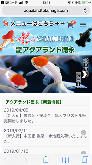 〔制作実績〕:金魚の養殖販売『アクアランド徳永』ホームページ制作