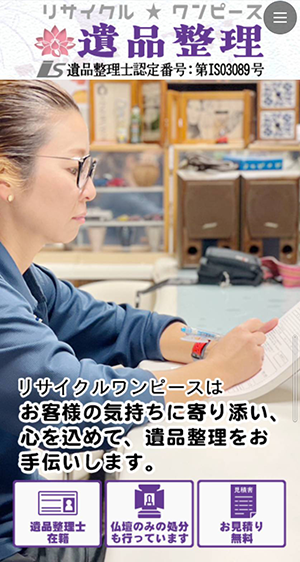 〔制作実績〕:遺品整理専門業リサイクルワンピースホームページ制作